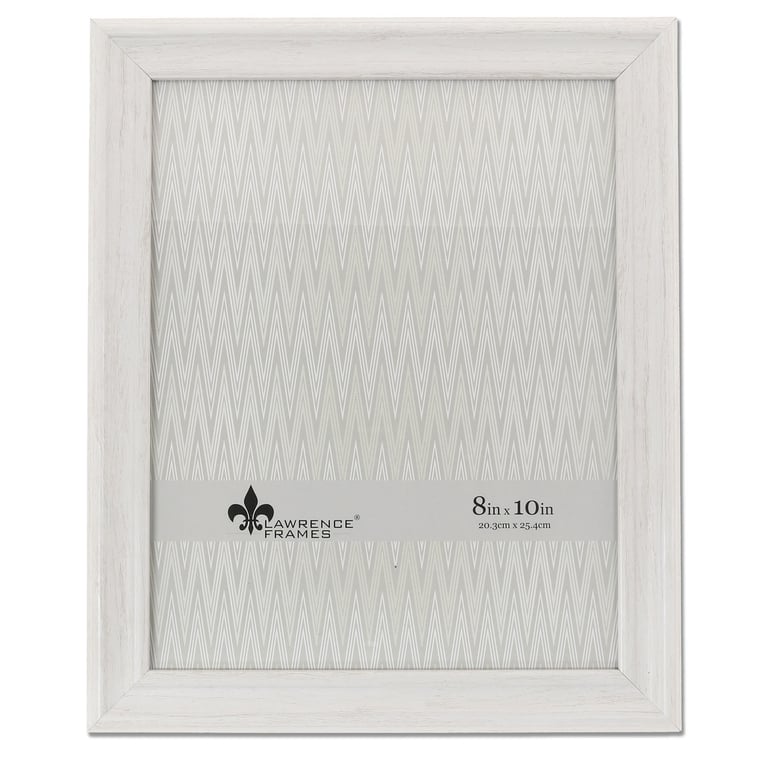 Main view Product Details Lawrence Frames® NEWPORT White 8x10 frame — Quality composite decorative picture frame with satin white wood grain finish. Easy open turn button black velvet backing makes it simple to open and insert your photo. Includes hangers for wall mounting and easel backing for tabletop display. By Lawrence Frames®, crafting fine frames for generations. NEWPORT White 8x10 frame Model #751148082426 List $23.00 You pay $16.95 In stock Can be shipped today [?] Your Price Match is Active Your request for a price of $0.00 for a minimum quantity of has been accepted. You have [time] left to purchase this item for $0.00 instead of $16.95 each. Find a Lower Price? We BEAT All Authorized Retailers [?] FEATURESDisplays:8"x10"Material:Wood (mdf/engineered)Finish:WhiteOccasion:Home decorating, Housewarming, Weekend Host GiftsStyle:Distressed - Weathered, Rustic/Lodge, CoastalOrientation:BothBrand:Lawrence Frames®Display Type:Desktop or Wall Approx. Overall Dimensions:9 1/2"x11 1/2"x13/16" This item ships in its own box SHARE THIS ITEM Share on Facebook