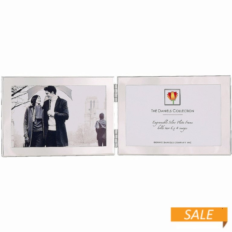 Product Details Dennis Daniels® Polished Silverplate 6x4 Hinged ½-inch frame by Dennis Daniels® — We love this frame for its high gloss beauty.Frame displays (2) 6"x4" landscape prints. Frame moulding is contemporary ½'' wide..Gift Tip: Have fun by adding a print or card on one side and a greeting or announcement on the other side. Crafted by the Dennis Daniels Co.® of California. Polished Silverplate 6x4 Hinged ½-inch frame by Dennis Daniels® Dennis Daniels® HOLIDAY CELEBRATION Savings - ends Sunday: Buy More / Save More * Add this item to your cart for the full details of this promotion. Conditions may apply. Model #782680016525 List $26.50 You pay $13.90 In stock Can be shipped today [?] Your Price Match is Active Your request for a price of $0.00 for a minimum quantity of has been accepted. You have [time] left to purchase this item for $0.00 instead of $13.90 each. Find a Lower Price? We BEAT All Authorized Retailers [?] FEATURESDisplays:4"x6"Material:SilverplateFinish:SilverOccasion:Birthday, Business & office, Celebrating Travels, Congratulations, Corporate gifts, Employee honors, Group Events + Parties, Friendship, Mother`s Day, Retirement, Teacher gifts, Team & coach gifts, Thank-Motivate-Reward, Home decoratingStyle:Classic, Minimal, Traditional, ContemporaryOrientation:Horizontal OnlyBrand:Dennis Daniels®Display Type:Desktop or Wall This item ships in its own box SHARE THIS ITEM Share on Facebook