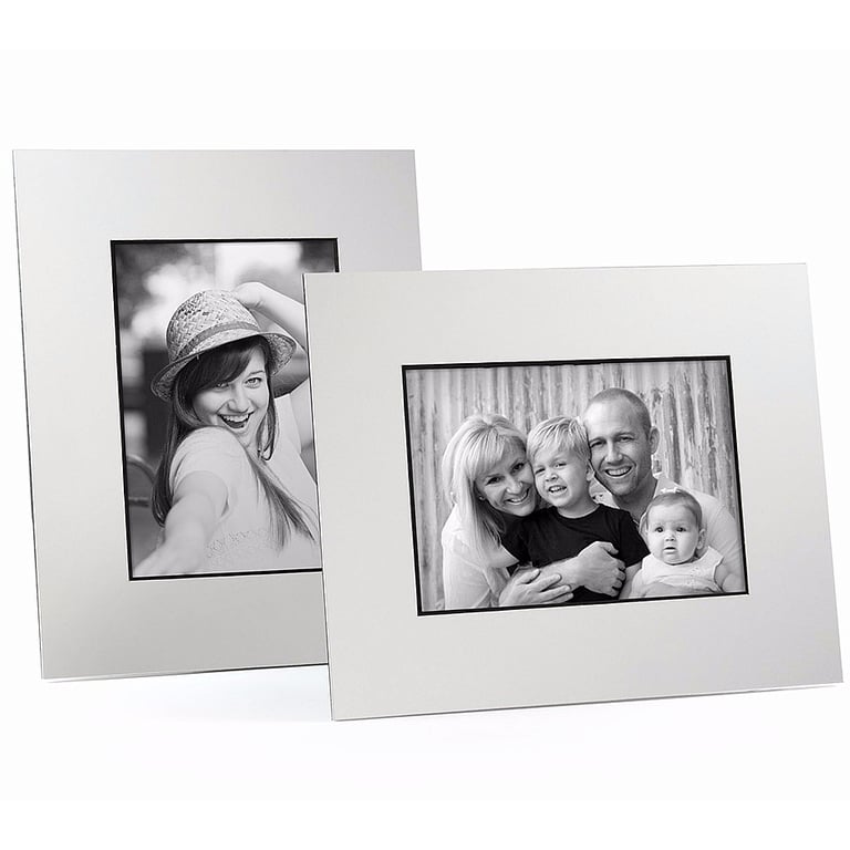 Back to results Scroll Items 7966 of 11044 Family Members 4"x6" - WHITE/Black BEVEL easel frame $2.95 8"x10" - WHITE/Black BEVEL easel frame $5.95 Main view Front View Dual Blk Easel Back w/Hang Tabs (blue) Sample Personalizing #1 (blue) Sample Personalizing #2 (blue) Sample Personalizing #3 Product Details WHITE/Black Core BEVEL-CUT Easel 5x7/8x10 Frame Paper Stock (sold in 6s) — For the professional photographer, our WHITE BEVEL-CUT Black Core paper easel frames are suitable for a variety of photographs including Senior and School portraits, Family portraits, Engagement and Wedding portraits, Cruise and Resort photography.Photo easily slides in from the side for convenient event assembly with your prints. Acid-free White (black core) mat board frame with bevel cut window opening Back of frame is black Available in other sizes and colors - see below for "related" styles For horizontal or vertical photos Die cut pop-out easel back for desk display, and pop-out hanging tabs for wall display Envelopes are not available Custom imprinting available starting at 50 pieces Individually priced; sold in 6's. Made in the USA. WHITE/Black Core BEVEL-CUT Easel 5x7/8x10 Frame Paper Stock (sold in 6s) Model #021352545230 List $33.00 You pay $23.70 ( set of 6 / $3.95 ea ) This item can be expected to ship by 02/25/2026. Order now by clicking ADD TO CART (below); you are only charged when we actually ship. Or, Click here to be automatically notified when it comes back in stock. Your Price Match is Active Your request for a price of $0.00 for a minimum quantity of has been accepted. You have [time] left to purchase this item for $0.00 instead of $3.95 each. Find a Lower Price? We BEAT All Authorized Retailers [?] FEATURESDisplays:5"x7"Material:Card-stockFinish:WhiteOccasion:Business & office, Group Events + Parties, WeddingStyle:Contemporary, Traditional, Travel Ready, MinimalOrientation:BothDisplay Type:Desktop or Wall Approx. Overall Dimensions:8"x10"x1/4" SHARE THIS ITEM Share on Facebook