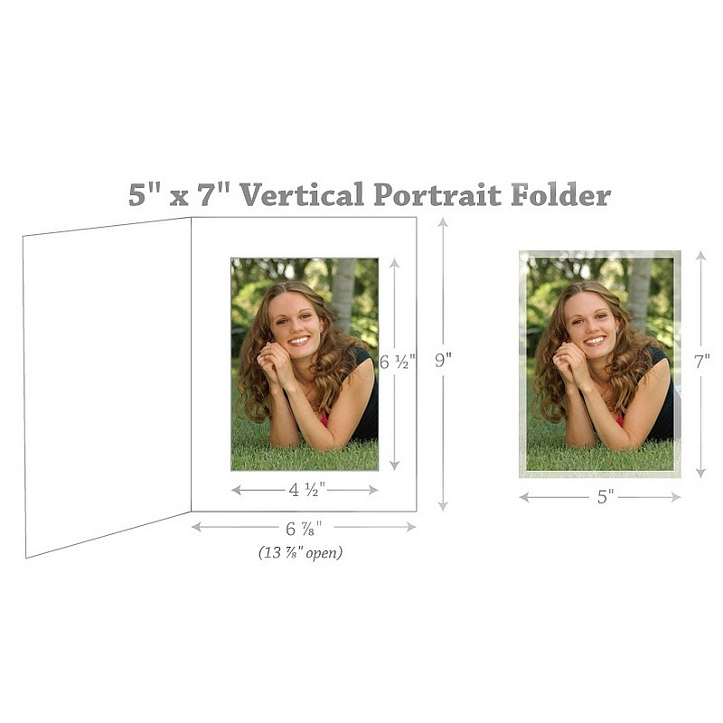 Back to results Scroll Items 8969 of 11100 Family Members 4"x5" - (vert) white w/gld foil border photo folder $0.78 4"x6" - (vert) white w/gld foil border photo folder $0.78 6"x8" - (vert) white w/gld foil border photo folder $1.15 8"x10" - (vert) white w/gld foil border photo folder $1.75 4"x6" - (horz) white w/gld foil border photo folder $0.78 4"x5" - (horz) white w/gld foil border photo folder $0.78 5"x7" - (horz) white w/gld foil border photo folder $0.99 6"x8" - (horz) white w/gld foil border photo folder $1.15 8"x10" - (horz) white w/gld foil border photo folder $1.75 Main view Sizing Printed cover samples Product Details Collectors Gallery White Cardboard Paper Portrait Photo-mount Folder 5x7 frame w/gold foil border (sold in 25s) — Frame your photos and prints like a professional studio photographer - at a fraction of the price !Portrait Folders are suitable for a variety of photographs including Senior and School portraits, Family portraits, Engagement and Wedding portraits, Cruise and Resort photography.Terrific look and feel with white linen weave finish, deckled edges, and gold foil window border.Photo easily slides in from the side for convenient event assembly with your prints. Frame displays a 5" x 7" print or photo (other sizes shown at bottom of the page). Individually priced; sold in 25's. Made in America. White Cardboard Paper Portrait Photo-mount Folder 5x7 frame w/gold foil border (sold in 25s) Model #021352575510 $24.75 ( set of 25 / $0.99 ea ) This item can be expected to ship by 01/06/2026. Order now by clicking ADD TO CART (below); you are only charged when we actually ship. Or, Click here to be automatically notified when it comes back in stock. Your Price Match is Active Your request for a price of $0.00 for a minimum quantity of has been accepted. You have [time] left to purchase this item for $0.00 instead of $0.99 each. Find a Lower Price? We BEAT All Authorized Retailers [?] FEATURESDisplays:5"x7"Material:Card-stockFinish:White, GoldOccasion:Bar & Bat Mitzvah, Business & office, Thank-Motivate-Reward, Celebrating Travels, WeddingStyle:Contemporary, Traditional, MinimalOrientation:Vertical OnlyDisplay Type:not applicable n/a Approx. Overall Dimensions:6 7/8"x9" SHARE THIS ITEM Share on Facebook