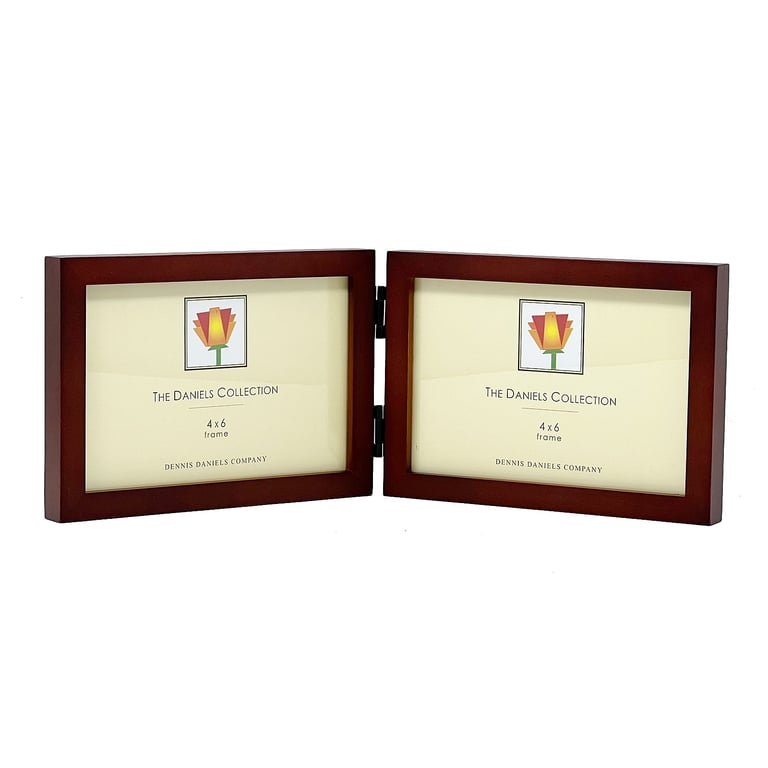Main view Product Details Dennis Daniels® The Original DANIELS W41: GALLERY WOODS dark walnut-brown landscape hinged 6x4 double by Dennis Daniels® — The superbly crafted Dennis Daniels hinged double; you will enjoy the look it gives to your photo story.Now in landscape and a walnut-brown stain finish.Frame edge is a very contemporary ½" all-around.Beautifully finished hardwood moulding with tapered seams. Glare resistant glass lenses. Brass hinges. Attractive black hardboard back has swivel tabs for easy and secure print loading.Quality crafted by Dennis Daniels® of California. The Original DANIELS W41: GALLERY WOODS dark walnut-brown landscape hinged 6x4 double by Dennis Daniels® Model #782680012312 List $24.50 You pay $16.95 In stock Can be shipped today [?] Your Price Match is Active Your request for a price of $0.00 for a minimum quantity of has been accepted. You have [time] left to purchase this item for $0.00 instead of $16.95 each. Find a Lower Price? We BEAT All Authorized Retailers [?] FEATURESDisplays:4"x6"Material:Wood (full grain)Finish:BrownOccasion:Business & office, Corporate gifts, Home decorating, Teacher gifts, Team & coach gifts, Celebrating TravelsStyle:Classic, Contemporary, Architectural, Minimal, TraditionalOrientation:Horizontal OnlyBrand:Dennis Daniels®Display Type:Desktop Only This item ships in its own box SHARE THIS ITEM Share on Facebook