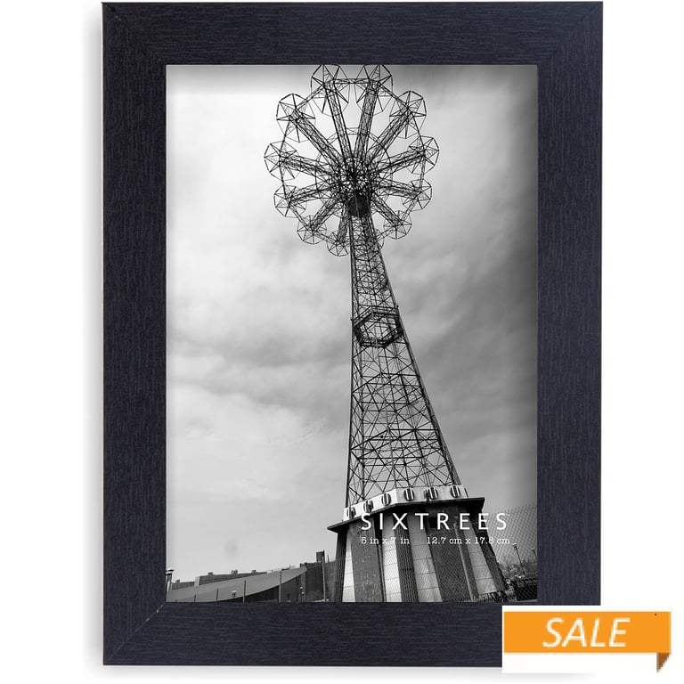 Product Details SIXTREES® ETHAN Black 5x7 by SIXTREES — Hand staining that makes the fine grain "pop" gives this style a unique visual appeal.Glare resistant glass lens. Dual easel back for portrait or landscape tabletop display. Wall mounts included for easy hanging.Made by Sixtrees®, excellence in design and quality. ETHAN Black 5x7 by SIXTREES Model #783729292863 List $17.50 You pay $8.90 In stock Can be shipped today [?] Your Price Match is Active Your request for a price of $0.00 for a minimum quantity of has been accepted. You have [time] left to purchase this item for $0.00 instead of $8.90 each. Find a Lower Price? We BEAT All Authorized Retailers [?] FEATURESDisplays:5"x7"Material:Wood (full grain)Finish:BlackOccasion:Business & office, Celebrating Travels, Group Events + Parties, Friendship, Home decoratingStyle:Contemporary, Distressed - Weathered, Minimal, Rustic/LodgeOrientation:BothBrand:SIXTREES®Display Type:Desktop or Wall This item ships in its own box SHARE THIS ITEM Share on Facebook