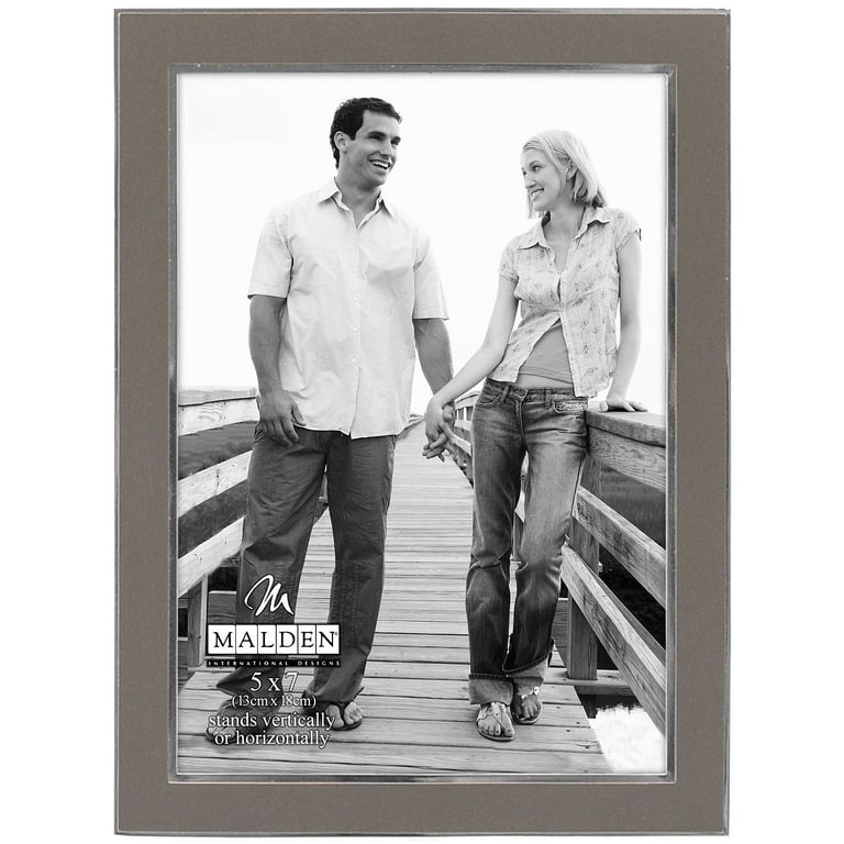 Product Details Malden Designs® Silver-on-Silver SLEEK 5x7 frame by Malden Design® — A sleek brushed silver frame with lovely silver trim.Especially designed for your photo where the theme of the room tends to be casual.Glare resistant glass lens. Dual easel for portrait or landscape table-top display.Produced by Malden Design®. Silver-on-Silver SLEEK 5x7 frame by Malden Design® Model #096287983358 List $19.00 You pay $13.95 This item IS in stock and can be expected to ship 01/26/2026 In stock Your Price Match is Active Your request for a price of $0.00 for a minimum quantity of has been accepted. You have [time] left to purchase this item for $0.00 instead of $13.95 each. Find a Lower Price? We BEAT All Authorized Retailers [?] FEATURESDisplays:5"x7"Material:Metallic (all)Finish:SilverOccasion:Bon voyage, Business & office, Home decorating, Teacher gifts, Celebrating TravelsStyle:Traditional, ContemporaryOrientation:BothBrand:Malden Designs®Display Type:Desktop or Wall Approx. Overall Dimensions:6 1/2"x8 1/2"x3/4" This item ships in its own box SHARE THIS ITEM Share on Facebook