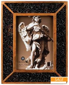 Product Details Burnes of Boston® Antiqued Bronze Mosaic Mirror 5x7 by Burnes — Antiqued bronze with mosaic glass inlay highlights this mirrored table top frame. Perfect for a traditional decorating style. Displays a 5" x 7" photo vertically or horizontally. SendAFrame proudly carries the Burnes of Boston® collection at the lowest everyday price - guaranteed! Antiqued Bronze Mosaic Mirror 5x7 by Burnes Model #013208374057 List $15.50 You pay $7.19 In stock Your Price Match is Active Your request for a price of $0.00 for a minimum quantity of has been accepted. You have [time] left to purchase this item for $0.00 instead of $7.19 each. Find a Lower Price? We BEAT All Authorized Retailers [?] FEATURESDisplays:5"x7"Material:Wood (full grain)Finish:SilverOccasion:Congratulations, Friendship, Good luck, Graduation, Grandparent`s Day, Home decorating, HousewarmingStyle:Antique, Art Nouveau, OrnateOrientation:BothBrand:Burnes of Boston® Approx. Overall Dimensions:7 7/8"x9 3/4"x5/8" This item ships in its own box SHARE THIS ITEM Share on Facebook