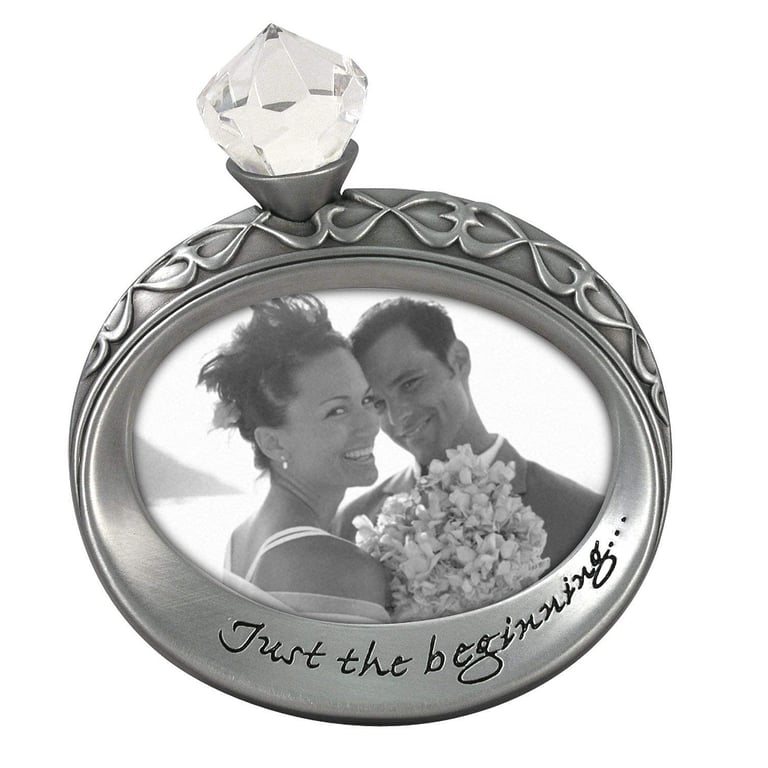 Product Details Malden Designs® DIAMOND RING for special day memories — Just the beginning . . . Clever wedding ring frame serves as a lovely remembrance of a couple's special day.Florentine silverplate finish. Inscription is cast into the piece for a quality look and feel.Easel back for tabletop display. Crystal clear glass lens.Crafted by Malden Designs®. DIAMOND RING for special day memories Model #096287651615 List $23.00 You pay $14.95 In stock Ships next business day [?] Your Price Match is Active Your request for a price of $0.00 for a minimum quantity of has been accepted. You have [time] left to purchase this item for $0.00 instead of $14.95 each. Find a Lower Price? We BEAT All Authorized Retailers [?] FEATURESDisplays:2.50"x3.50"Material:SilverplateFinish:SilverOccasion:Anniversary, Engagement, WeddingStyle:Classic, Contemporary, Double-sided, TraditionalOrientation:BothBrand:Malden Designs® Approx. Overall Dimensions:5 1/2"x4 3/4"x1 3/4" This item ships in its own box SHARE THIS ITEM Share on Facebook