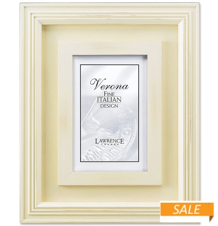 Main view Corner detail Product Details Lawrence Frames® Dimensional rustic cream frame by Lawrence Frames® — A rustic cream frame has beautiful beveled mouldings and wonderful grain accents.Crafted in distressed cream hardwood. Dual easel for tabletop landscape or portrait display. Wall mounts included for easy hanging. Glare resistant glass lens.Quality crafted expressly for the critical customers of SendAFrame.From Lawrence®, maker of fine frames for generations. To view the entire collection, click: Lawrence® designs Dimensional rustic cream frame by Lawrence Frames® Lawrence® HOLIDAY CELEBRATION Savings: Buy More / Save More * Add this item to your cart for the full details of this promotion. Conditions may apply. Model #751148059138 List $19.00 You pay $9.90 In stock Can be shipped today [?] Your Price Match is Active Your request for a price of $0.00 for a minimum quantity of has been accepted. You have [time] left to purchase this item for $0.00 instead of $9.90 each. Find a Lower Price? We BEAT All Authorized Retailers [?] FEATURESDisplays:4"x6"Material:Wood (full grain)Finish:WhiteOccasion:Business & office, Home decoratingStyle:Classic, Rustic/Lodge, Shabby Chic, Vintage Victorian, Distressed - WeatheredOrientation:BothBrand:Lawrence Frames®Display Type:Desktop or Wall Approx. Overall Dimensions:8 11/16"x10 3/4"x7/8" This item ships in its own box SHARE THIS ITEM Share on Facebook