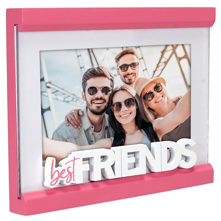 Main view Product Details Malden Designs® BEST FRIENDS 7x5/6x4 EXPRESSIONS Frame Captures a special moment together — Celebrate good times with the best FRIENDS frame.Add a special snapshot and you've made a great gift that will always be appreciated.Glare resistant glass lens. Hardboard easel back for tabletop display. Wall hooks included for easy hanging.This novelty frame is produced by Malden USA®. BEST FRIENDS 7x5/6x4 EXPRESSIONS Frame Captures a special moment together Model #096287172554 List $16.50 You pay $13.95 In stock Ships next business day [?] Your Price Match is Active Your request for a price of $0.00 for a minimum quantity of has been accepted. You have [time] left to purchase this item for $0.00 instead of $13.95 each. Find a Lower Price? We BEAT All Authorized Retailers [?] FEATURESDisplays:4"x6"Material:Wood (mdf/engineered)Finish:PinkOccasion:Birthday, Friendship, Weekend Host GiftsStyle:Contemporary, Words & whimsy, Sentiments | ready madeOrientation:Horizontal OnlyBrand:Malden Designs®Display Type:Desktop or Wall Approx. Overall Dimensions:7"x6 1/4"x3/4" This item ships in its own box SHARE THIS ITEM Share on Facebook