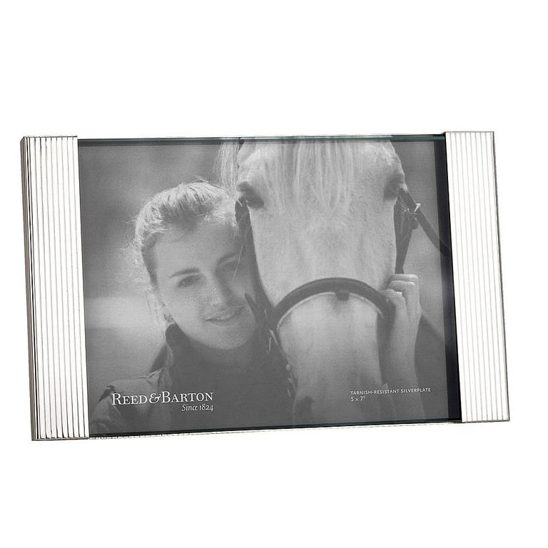 Main view Edging detail Corner detail Product Details Reed & Barton BOULEVARD silver 5x7 frame by Reed & Barton® — Exquisitely crafted in silverplate, BOULEVARD is a beautifully designed frame with unique style. The clean simplicity of this design, with wave ridged sides, creates an ideal piece for a handsome photo display.Each piece is carefully hand polished and lacquered for care-free use.Dual easel back for portrait or landscape desktop display. Glare resistant glass lens.Crafted by Reed & Barton, fine silver since 1824. BOULEVARD silver 5x7 frame by Reed & Barton® Model #735092225429 List $28.00 You pay $19.95 In stock Ships next business day [?] Your Price Match is Active Your request for a price of $0.00 for a minimum quantity of has been accepted. You have [time] left to purchase this item for $0.00 instead of $19.95 each. Find a Lower Price? We BEAT All Authorized Retailers [?] FEATURESDisplays:5"x7"Material:SilverplateFinish:SilverOccasion:Anniversary, Baptism + Christening, Engagement, Friendship, Mother`s Day, Romantic, Valentine`s Day, WeddingStyle:Classic, Romantic, TraditionalOrientation:BothBrand:Reed & BartonDisplay Type:Desktop Only This item ships in its own box SHARE THIS ITEM Share on Facebook
