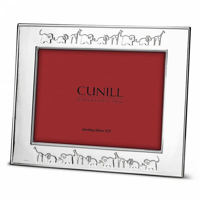 Main view (sample) Product Details Cunill® Silver SAFARI PARADE Fine Sterling Silver 7x5 frame by Cunill® Italy — Pressed from a single sheet of silver, Cunill frames offer sophisticated style and quality. The Cunill quality is unsurpassed, even to the backing which is a fitted wood piece to easily lock-in your photos. Cunill sterling never needs polishing - it is finely lacquered to keep it tarnish free. Gift packaged in the signature Cunill 2-piece red storage box. Crafted in, and imported from, Cunill® Italy. SAFARI PARADE Fine Sterling Silver 7x5 frame by Cunill® Italy Model #300844105931 List $250.00 You pay $224.95 In stock Can be shipped today Your Price Match is Active Your request for a price of $0.00 for a minimum quantity of has been accepted. You have [time] left to purchase this item for $0.00 instead of $224.95 each. Find a Lower Price? We BEAT All Authorized Retailers [?] FEATURESDisplays:5"x7"Material:Sterling Silver (fine)Finish:SilverOccasion:Baby shower, Birthday (child)Style:Animals & pets, Child`s play, ContemporaryOrientation:Horizontal OnlyBrand:Cunill® SilverDisplay Type:Desktop Only This item ships in its own box SHARE THIS ITEM Share on Facebook