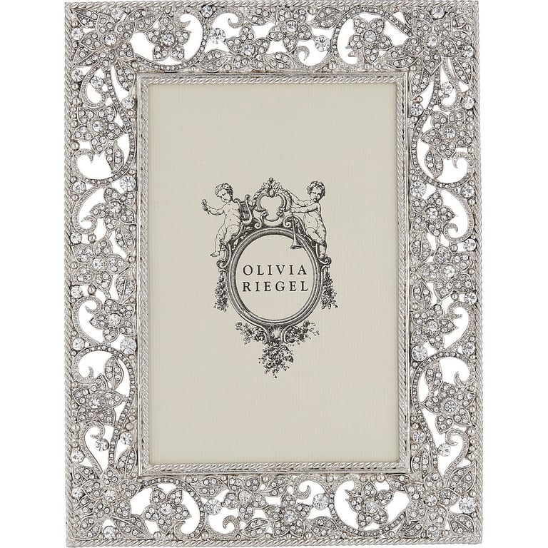 Main view Product Details Olivia Riegel Silver Flora 4x6 Frame by Olivia Riegel® — Silver finished pewter floral pattern, richly encrusted with hand-set clear European crystals. Elegant gray hued moiré silk back, with easel designed for vertical or horizontal placement. Beveled glass. Tarnish resistant. Signature luxury gift box included. An original design frame from the Olivia Riegel® collection Silver Flora 4x6 Frame by Olivia Riegel® OLIVIA RIEGEL® WINTER Savings- Buy More / Save More * Add this item to your cart for the full details of this promotion. Conditions may apply. Model #851090000667 $195.00 This item IS in stock and can be expected to ship 02/03/2026 Your Price Match is Active Your request for a price of $0.00 for a minimum quantity of has been accepted. You have [time] left to purchase this item for $0.00 instead of $195.00 each. Find a Lower Price? We BEAT All Authorized Retailers [?] FEATURESDisplays:4"x6"Material:Jewels/crystalFinish:SilverOccasion:Anniversary, Birthday, Congratulations, Engagement, Home decorating, Mother`s Day, Romantic, Valentine`s Day, WeddingStyle:Classic, Ornate, Romantic, TraditionalBrand:Olivia RiegelDisplay Type:Desktop Only Approx. Overall Dimensions:6 1/4"x8 1/4" This item ships in its own box SHARE THIS ITEM Share on Facebook